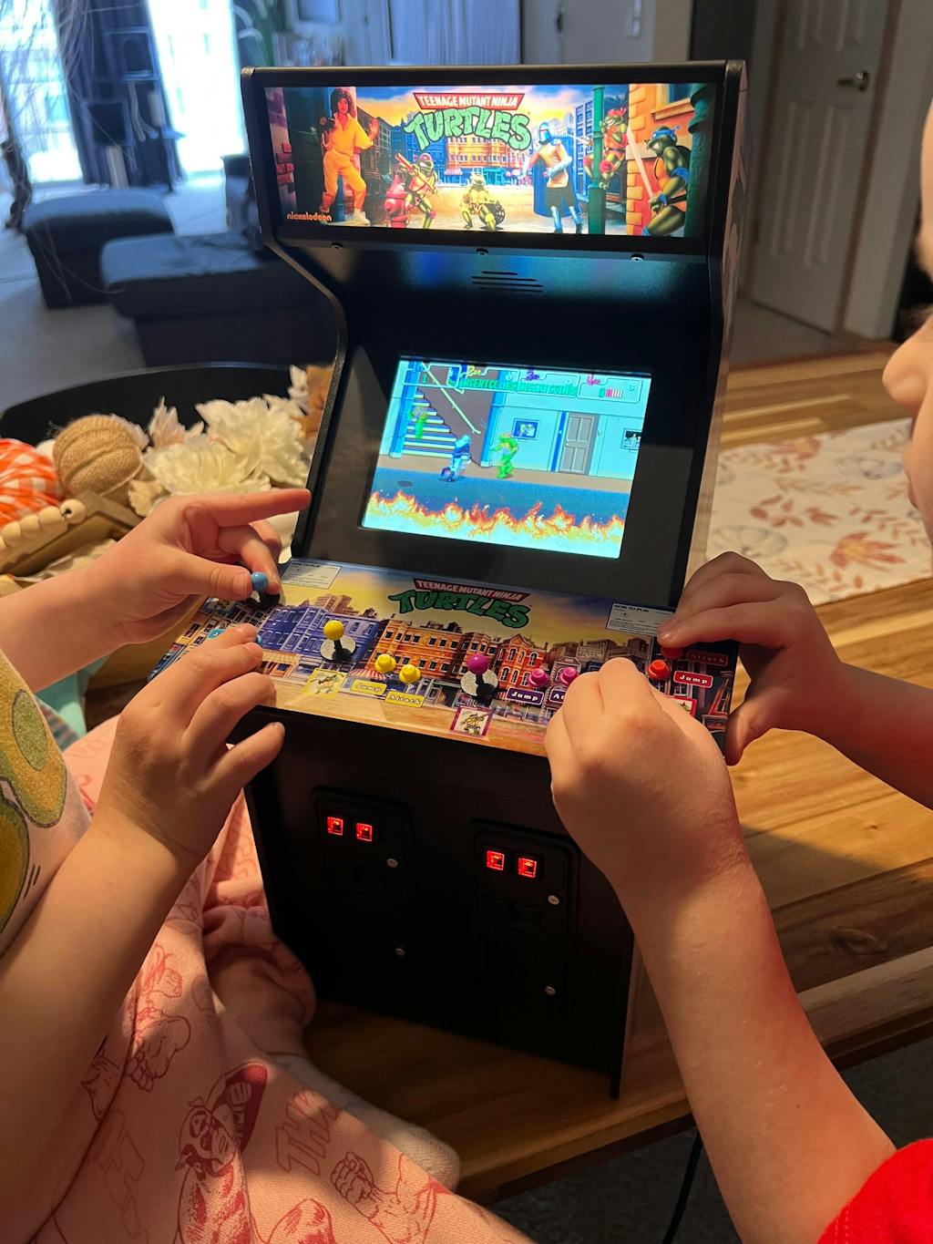 Four-player co-operative gameplay gives you the chance to team up with friends and family to take down Shredder and his minions! With its fast-paced gameplay, memorable soundtrack, and challenging levels, the Teenage Mutant Ninja Turtles arcade game will keep you entertained for hours. Whether you're a long-time fan of the Turtles or new to their world, this game is sure to satisfy your craving for classic arcade action.